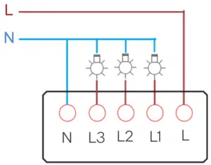 - The second (and third) switch will only require a power supply with wire connections to L and N only. Leave the output (L1, L2 or L3 empty).