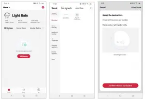 If not automatically in pairing mode when powered on, you can manually set the device in pairing mode by pressing and holding the button for 10-15 seconds until the green indicator flashes rapidlyAdd device through network - Once registered, tap “+” in the upper right corner of the app’s home page to add a new device through the network.
