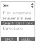 - Press ▼CID or ▲DIR to choose Smart call blk, and then press SELECT.