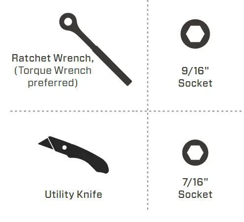 - After properly aligning the lock rods in the closed position, it is time to tighten all brackets using a 7/16″ socket. To ensure a tight seal, it is crucial to simultaneously push up on the bracket AND apply downward pressure on the cover. Repeat for all bracket locations.