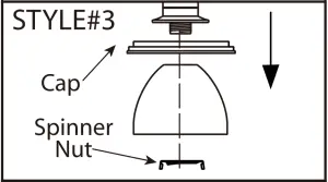 Style#3: Remove spinner nut from socket. Position glass on lamp and secure with spinner nut.