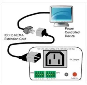 Fig.1 Connect Network - 2. Connect Powered Device. Connect the device to be powered ON and OFF to the IEC receptacle marked A/C Outlet. An IEC-320 to North American (NEMA 5- 15) power cord is included for connecting the iBoot outlet to the device to be controlled. If the device has a power switch, turn it on, to allow iBoot-G2+ to control the power.