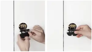 Use the adhesive strip in the box to fix the exterior (outdoor) part of the deadbolt, in order to prevent it from falling when the thumb turn is removed.