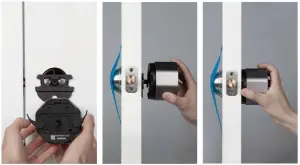 - Place the base plate over the deadbolt
