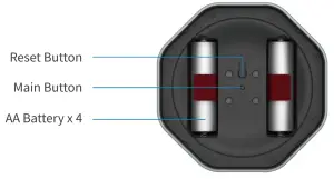 Take off Aegis’s front cover, and insert 4 AA batteries into the battery slots. After that, you should see a white light flash once, indicating that Aegis is powered on. Then, place the front cover back.