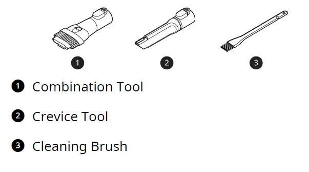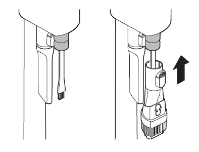 4 Attach the crevice tool to the product body and use the vacuum to remove foreign objects and dust from the brush and the bottom of the nozzle.