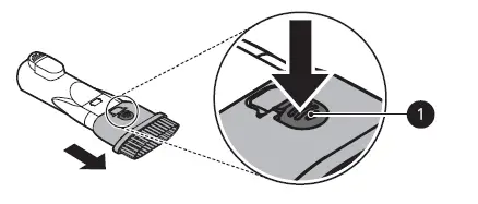 1 Press the nozzle release button to remove the nozzle from the extension pipe or product body and turn the nozzle upside down.