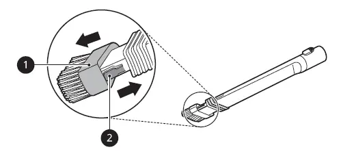 - Keep fingers away from pinch points when assembling the nozzle on the appliance or the rotating brush on the nozzle.