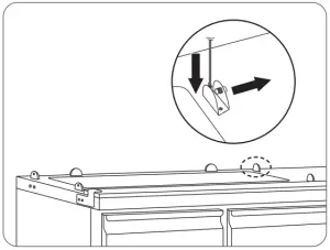 Note: Before using the appliance for the first time, clean the shelves and interior with soapy water. - Mount the joint assembly onto the glass panel.