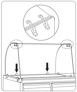 - Fix the top part of the back panel in place with the supplied joint assembly. Now the sneeze guard is mounted.