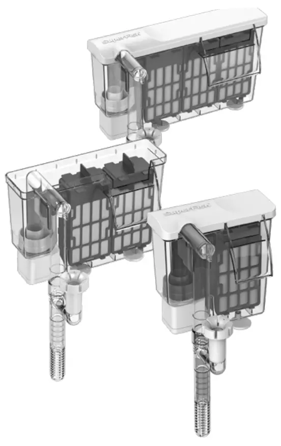 Hang on Filter 50, 100 and 200 are external filters for cold water and tropical aquariums. The hang on application of the biological filter at the rear, saves space inside the aquarium.