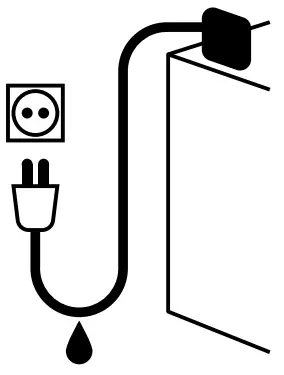 - Protect the socket and plug against moisture. Use a drip loop to ensure that water cannot reach the socket via the power cord.