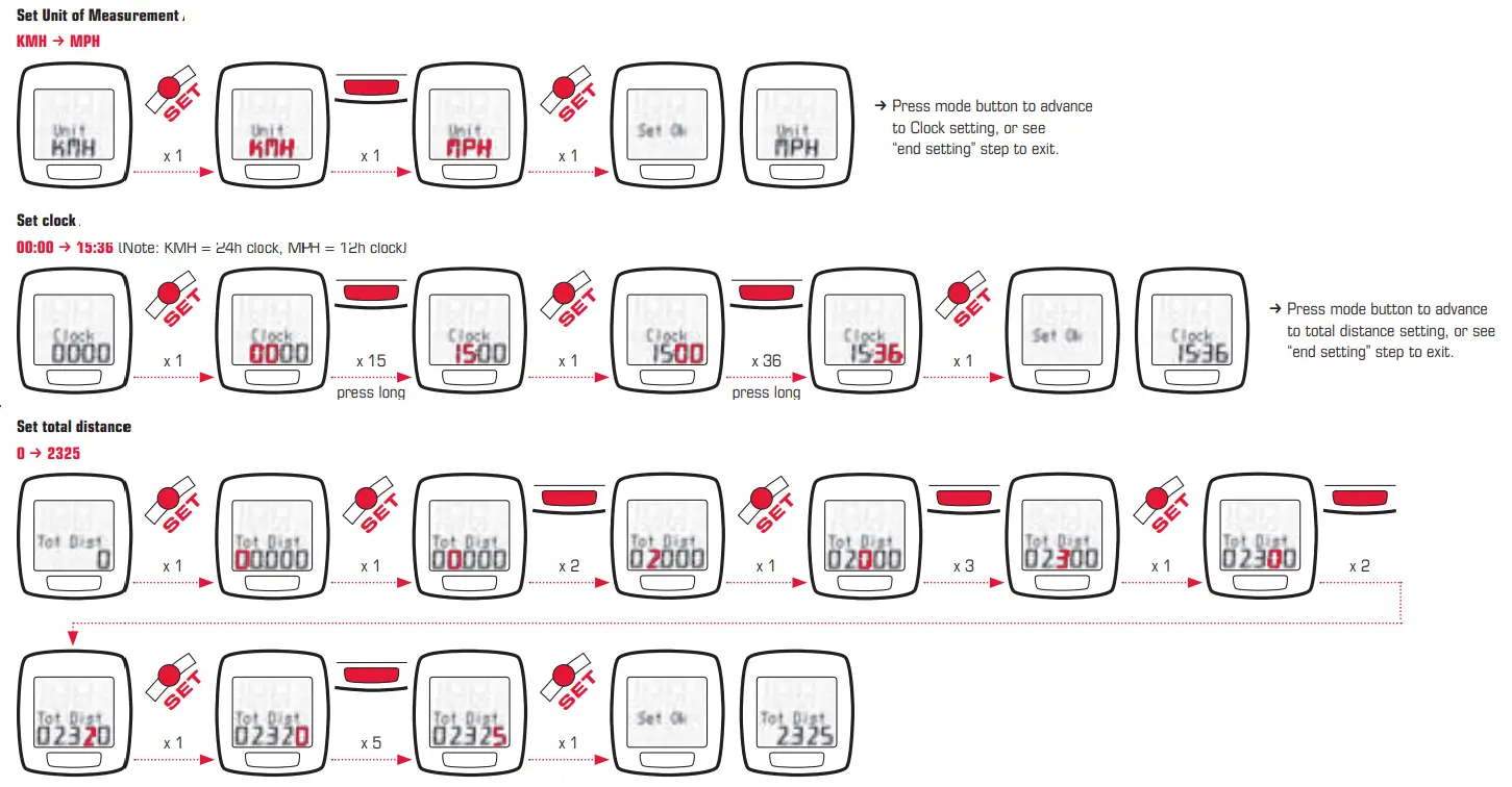 Your bike computer comes in “deep sleep mode”. To exit this mode, press and hold any button for five seconds. Once it has woken up, the bike computer will be in the settings menu.