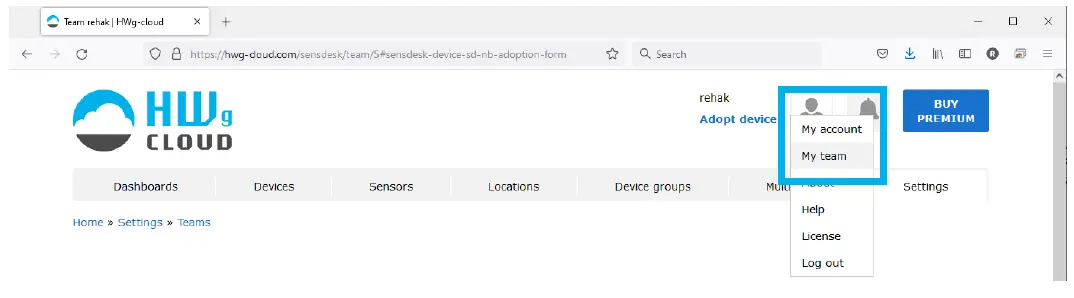 Open the www.HWg-cloud.com website, login to your account and go to the My Team page.