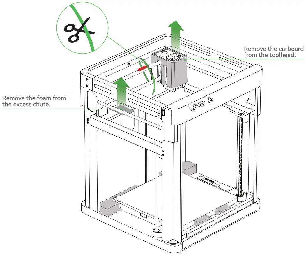 DO NOT remove the protective foam from beneath the hot bed until after the initial calibration is complete.