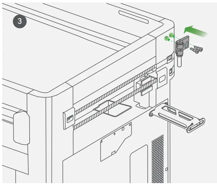 Secure the PTFE tube anchor with two screws from the accessory box.