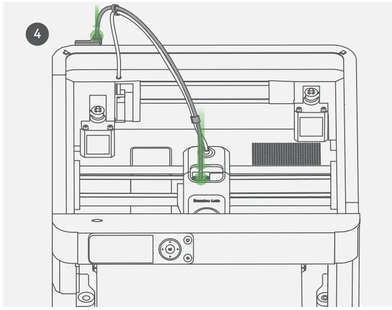 Place the PTFE tube as pictured. Make sure both ends of the PTFE tube are inserted tightly.