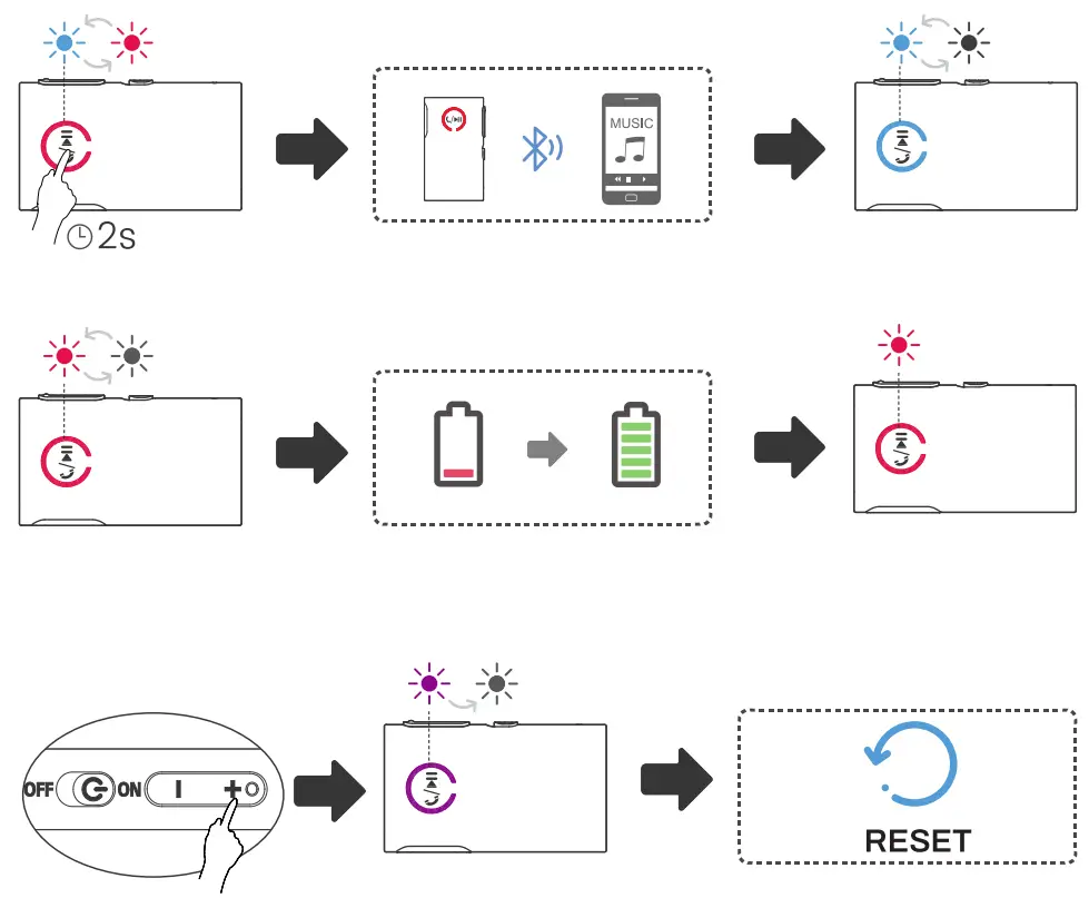 (The LED flashes Blue / Red alternately fast) - Activate bluetooth on your phone or another device and c lick “MLI00/MLI0f to connect