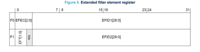- EFID1 ->`00000000011111111111111111111` -> First ID of extended ID filter element