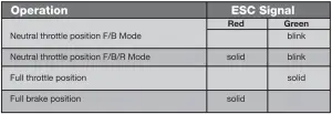 - Return the transmitter to neutral. The green LED will blink to signify that it is in the neutral position. Note: When the ESC is in Forward/Reverse/Brake mode, the green LED will blink, and the red LED will illuminate and remain solid while at the neutral position.