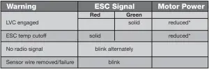- Always use caution when handling your ESC as it may become extremely hot during use
