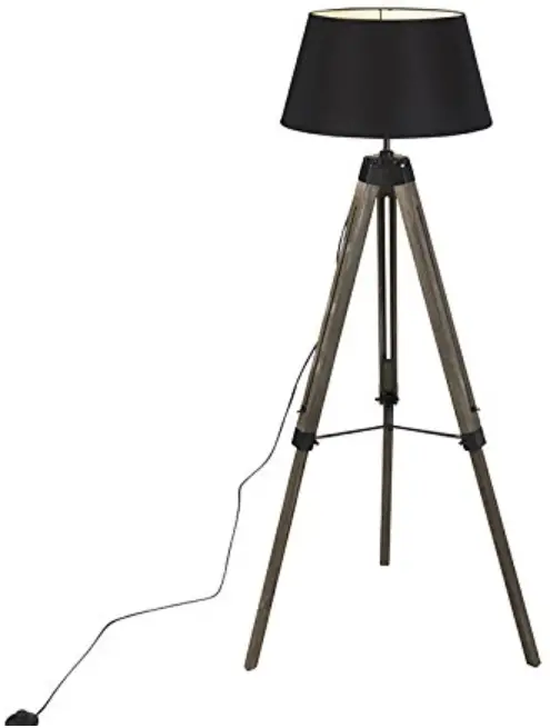 QAZQA 96594 Rio FL Wood and Black Shade Floor Lamp