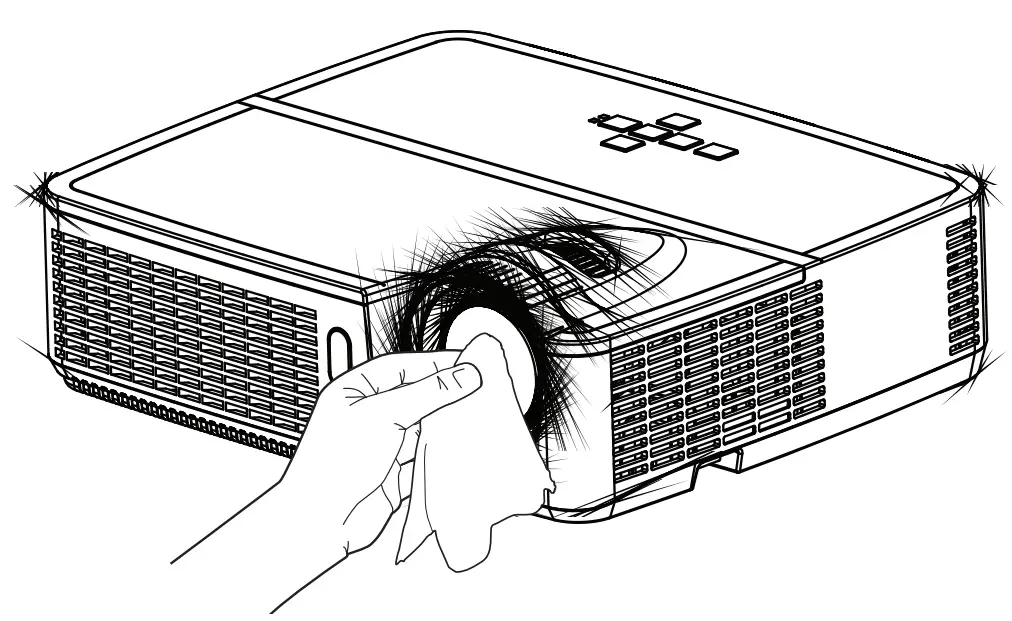 - Do not touch or block the projector lens with any objects as this can damage the projector lens. Scratches, gouges and other lens damage are not covered by the product warranty.