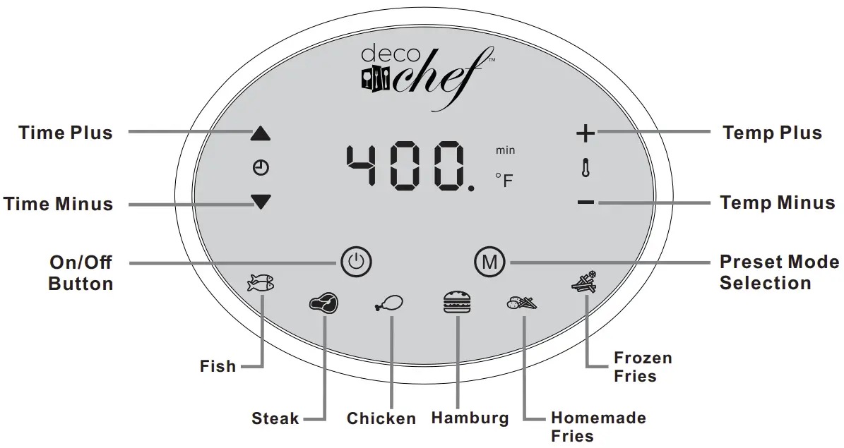 • You can also use one of the preset shortcut functions, and adjust as needed with the timer and temperature buttons.