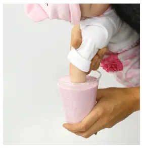 - Mix the Lucky Hands® 3D Pro Moulding Powder as described in detail in the previous instructions for approximately 30 seconds with distilled water at a maximum temperature of 23°C in a suitable cup to form a homogeneous mass. For babies up to 12 months of age, a mixture of 70 g Lucky Hands® 3D Pro Moulding Powder and 150 ml distilled water should be sufficient. Please note that this is a reference value which may vary depending on the actual size of the hand or foot.