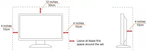 See below the recommended ventilation areas around the monitor when the monitor is installed on the wall or on the stand: