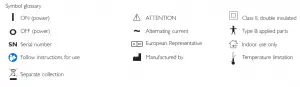 Class II device, Type B device (device with specific protection against electrical hazards).