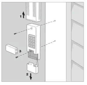 Install out of reach of small children at a minimum height of 5 feet (1.5 m) above floors, landings, steps or any other adjacent walking surface, and away from ALL moving parts of door. Secure keypad to a smooth surface. Mount the keypad out of the path of the moving garage door, but within sight of it (4″ [10 cm] clearance is needed for the cover).