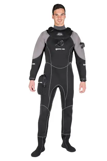 No dry suit can provide total mobility and freedom of movement. This fact combined with the effect of breathing compressed gases while moving through water leads us to recommend that you don’t exert yourself beyond your own comfort level while diving with this suit.