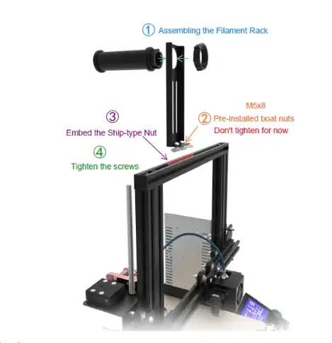 - Install the filament rack