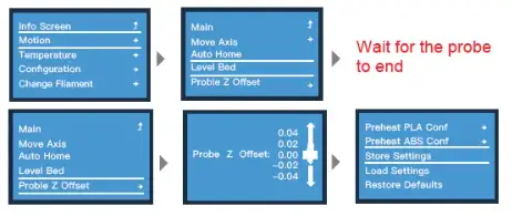 - Before leveling the bed, Please select Restore Default settings and select Store Settings.(Save Settings)