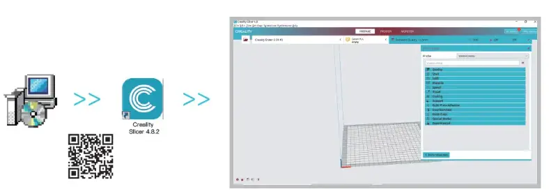 - Scan the QR code above to download from the website, or find the Creality software on your memory card and install it.