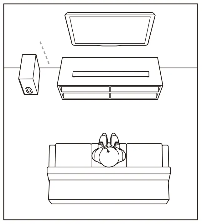 - For best sound output and good airflow around the soundbar, place your soundbar and subwoofer as shown on the right.