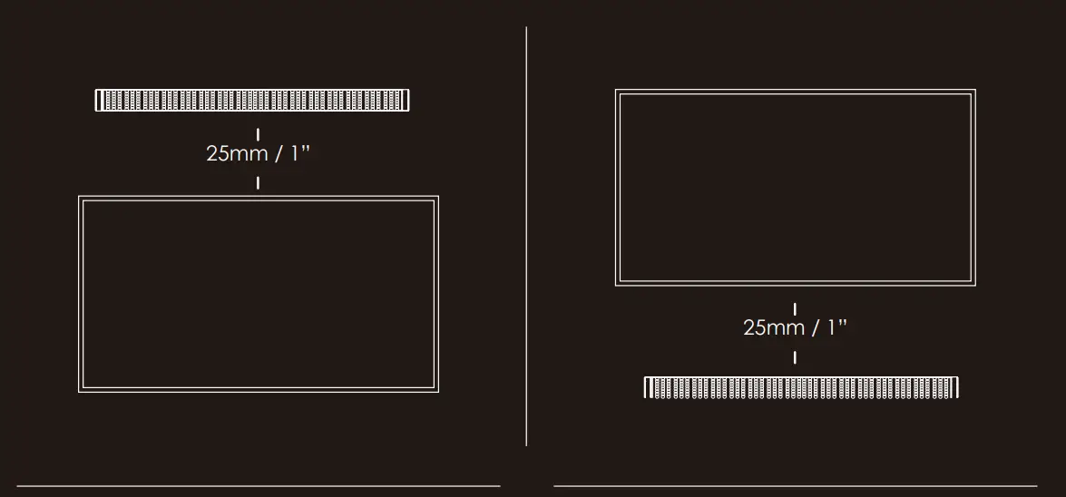 Install the speaker on a vertical, secure, reinforced area of wall. For plaster walls, it is recommended to screw into wall studs for greater security. For optimum performance, allow at least 25mm/1’’distance between the soundbar and the TV.