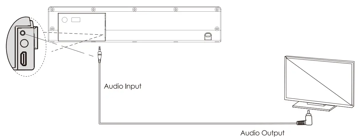 - Firstly connect the soundbar to your PC, laptop, smart-phone, TV, or other audio devices by using an AUX cable provided. Make sure that these devices have both AUX IN and AUX out terminals.