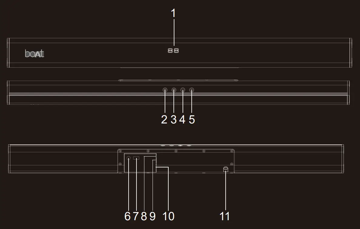 - INPUT: Input mode(AUX/USB/HOMl(ARC)/OPT/BT).