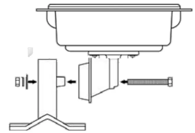 Attach the access point with the connector flange ② to the mounting arm ①. Use the M8 x 110 bolt with spring locking washer, washer and nut.”
