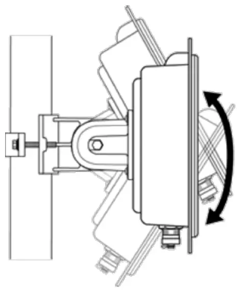 The main beam direction of the integrated antenna can be adjusted by tilting the access point up or down by rotating the connection flange about the mounting arm.