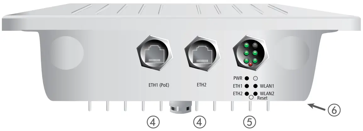 ④ ETH1 (PoE), ETH2 interfaces