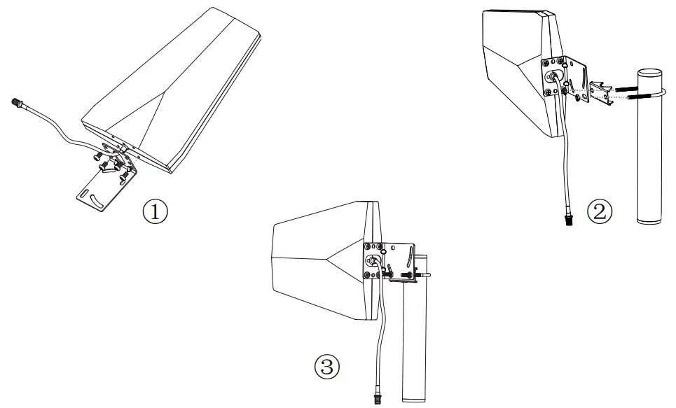 Pole mounting and wall mounting options are included. The pole mounting option is preferred because it will be easier to adjust to the direction of the cell tower.