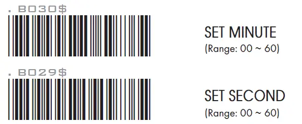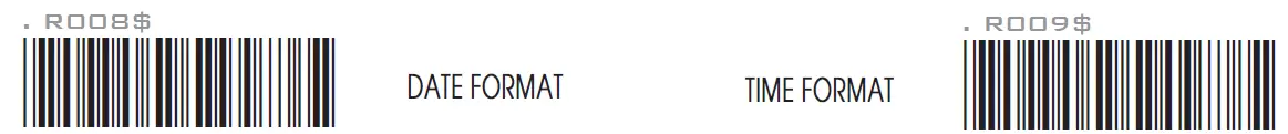 The default Data Format is <Date>, <Time>, <Barcode Data> below are items and their setup codes: