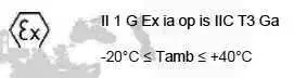| Ex ia IIC T3 Ga | -20ºC ≤ Tamb ≤ +40ºC |