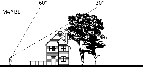 Depending on where you live, the satellite will be at an elevation angle between 30 and 60 degrees. Southern states point more toward 60 degrees; northern states point more toward 30 degrees.