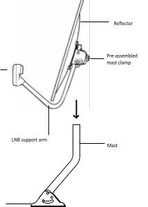 - Complete the Dish Assembly – Place the dish on the mast and connect the RG-6 coaxial cable to the LNB, and attach the LNB to the support arm.