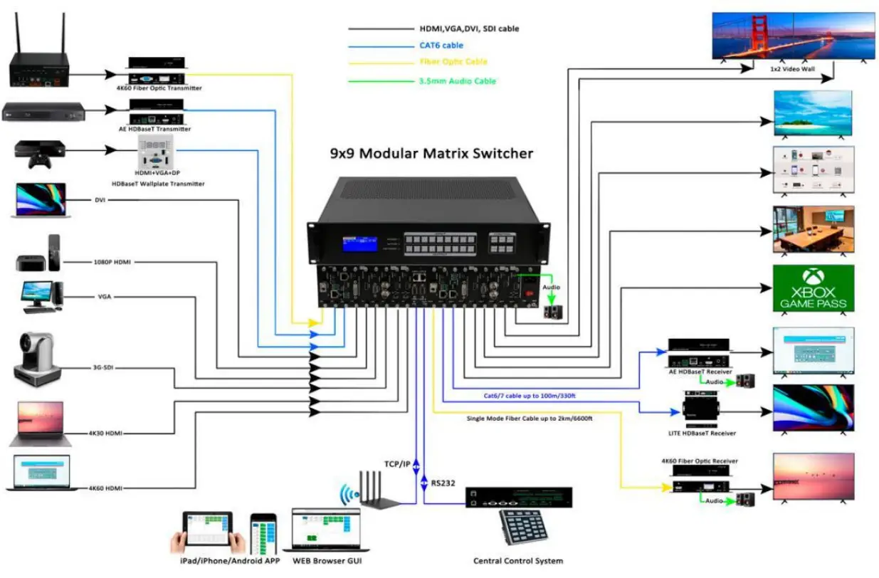 ANGUSTOS AMVC-0909 9×9 Modular Matrix Switcher with the WEB GUI, APP control