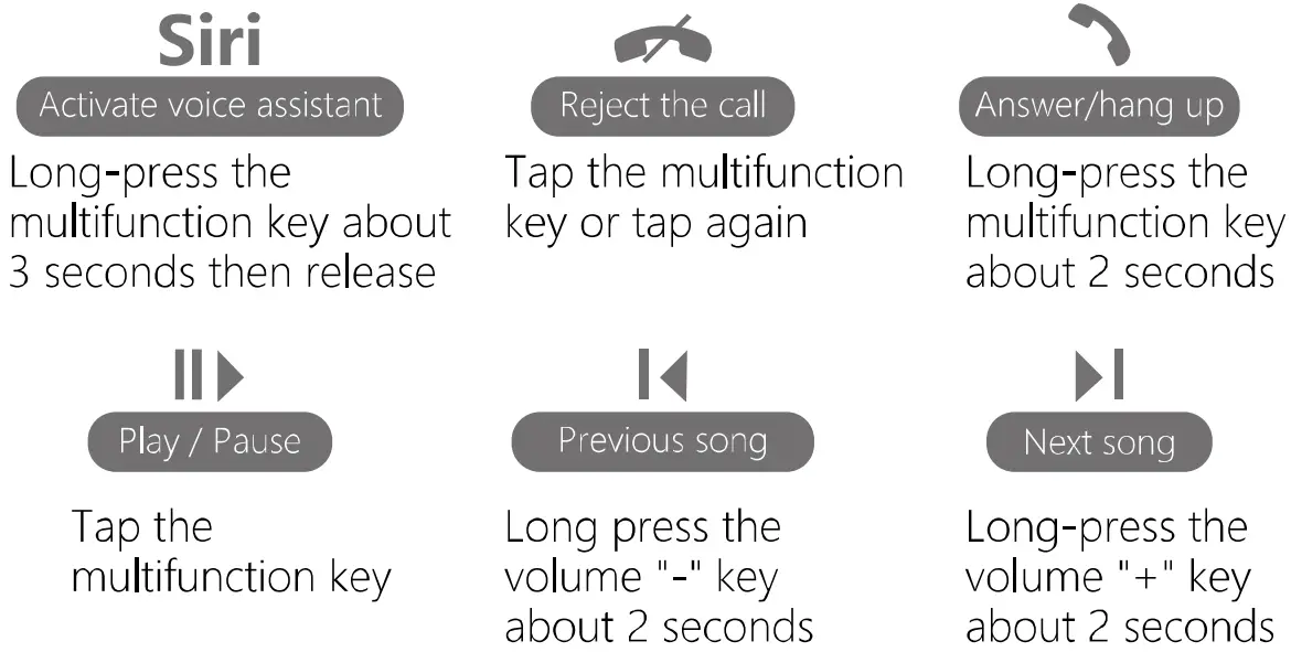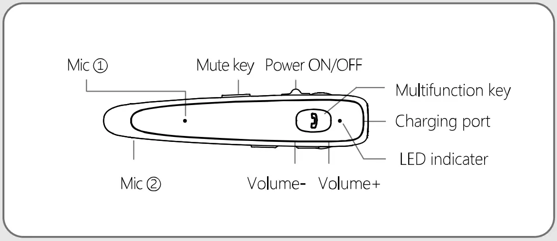 | Multifunction key | Answer/Reject/Redial /Hang up Play/Pause music |